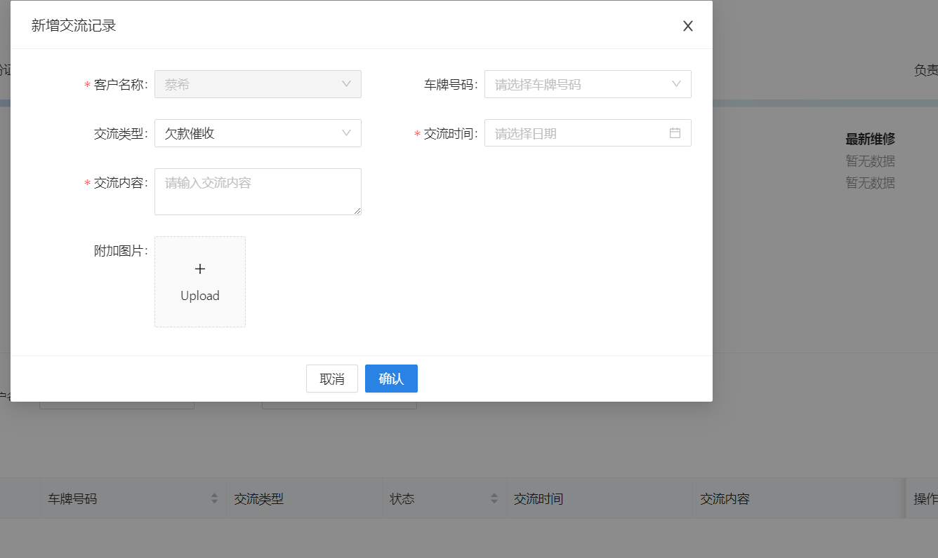 交流记录用于记录客户与租户之间的交流信息。可新增记录、编辑记录、删除记录