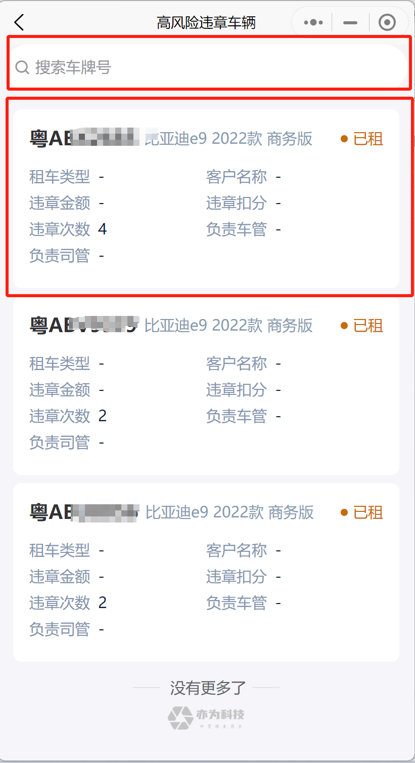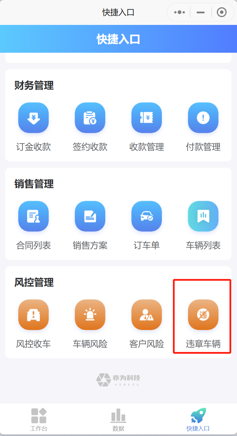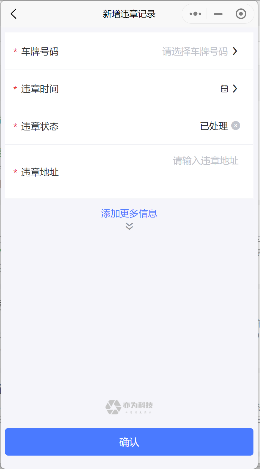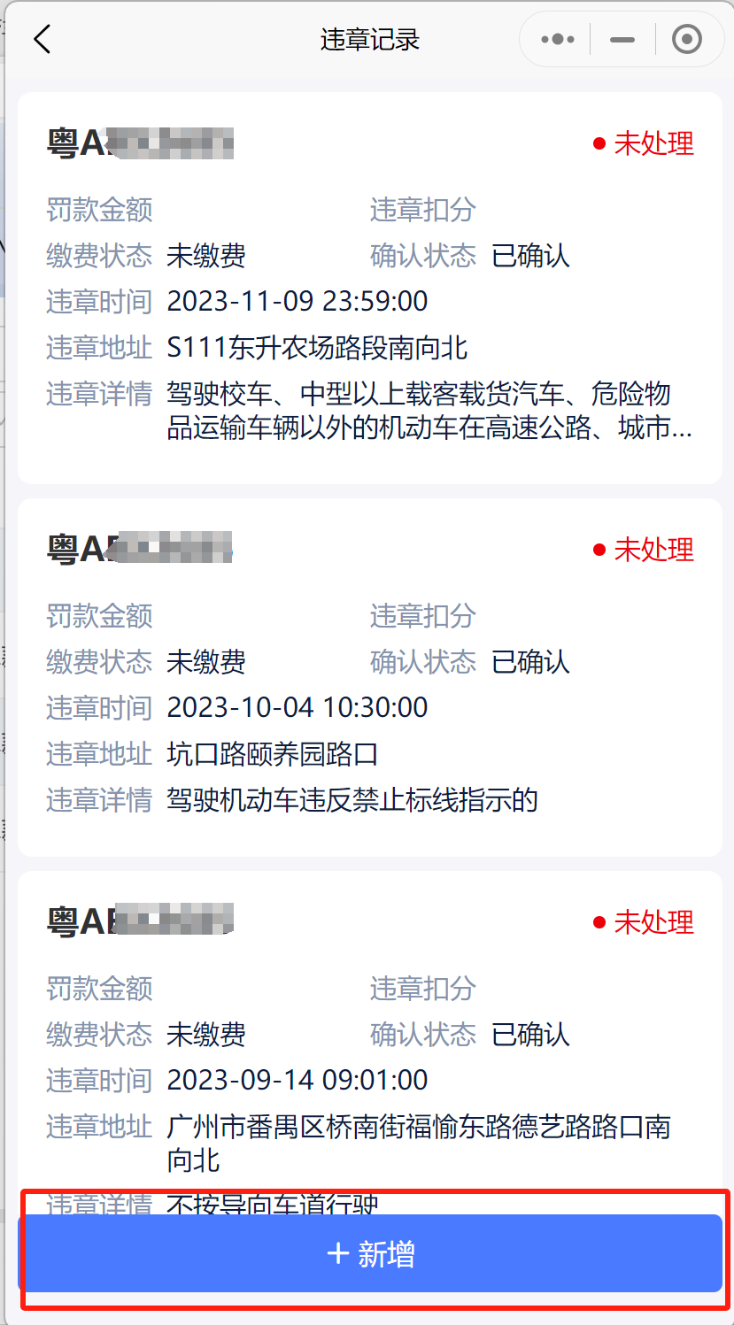 违章车辆模块用于对出现违章的车辆进行管理,支持查看/编辑/删除车辆的违章明细、为车辆新增违章记录和通过下载模板填写批量导入违章记录,以及为客户发送短信通知。  点击“查看明细”可通过筛选查询车辆的违章明细    微信小程序可以从快捷入口进入违章车辆对高风险违章车辆进行查看和操作。