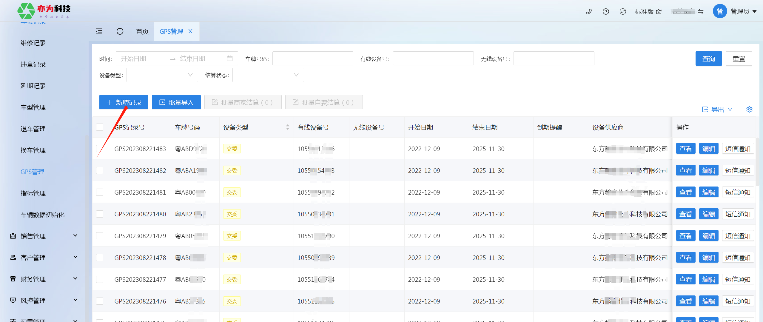 GPS管理主要用于(1)管理设备是否到期,正常租赁公司会安装2套及以上设备:交委指定设备及公司风控设备。(2)其主要用途为查看车辆的位置信息及监测公里数,设置GPS围栏及GPS报警设置。支持批量商家结算及批量自费结算。   车辆的实时位置通过:车辆管理-车辆列表-查看-当前位置    微信小程序可通过快捷入口进入GPS管理。