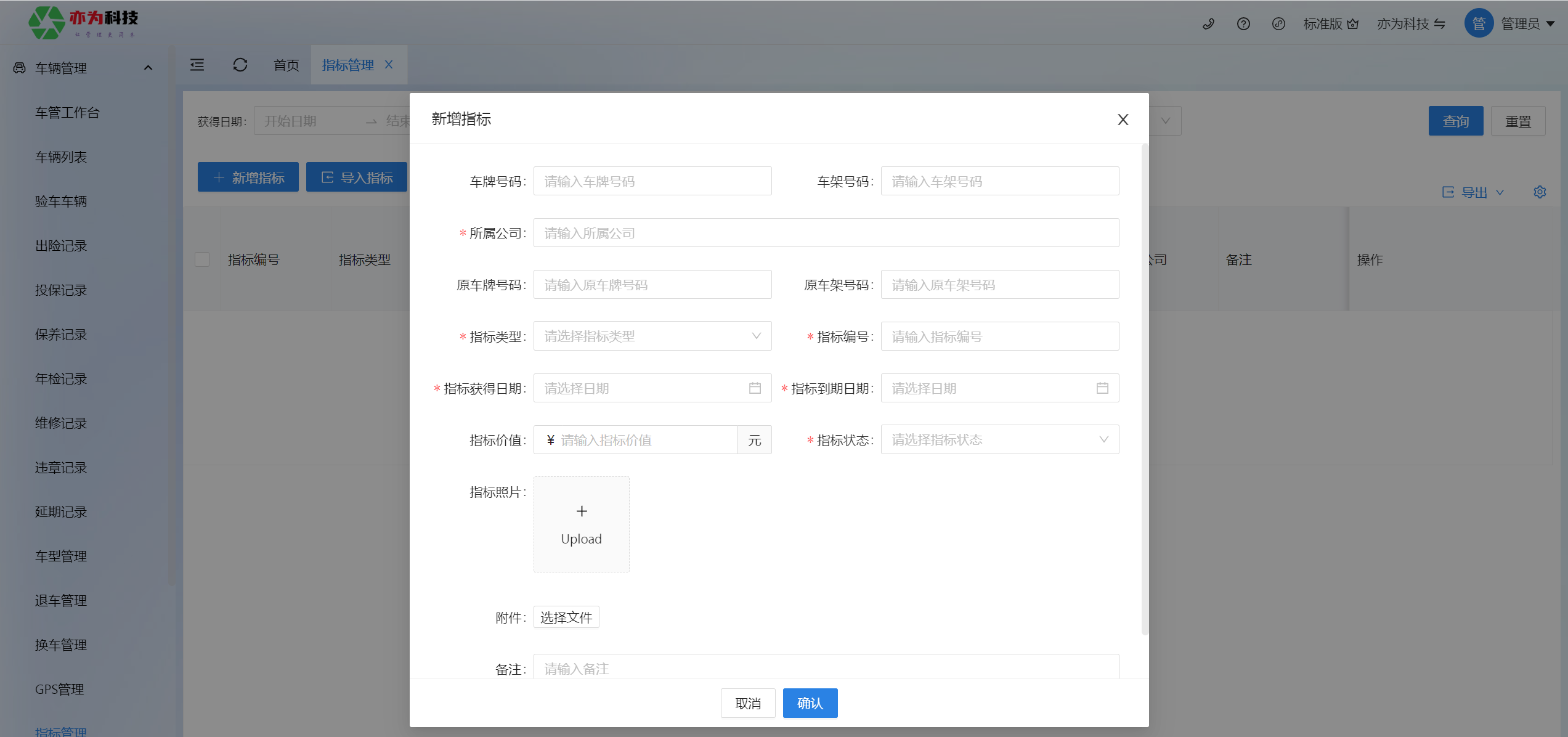 指标管理主要是供限牌城市租赁公司使用,用于管理车辆指标使用。主要功能有新增指标/更新指标/使用指标。