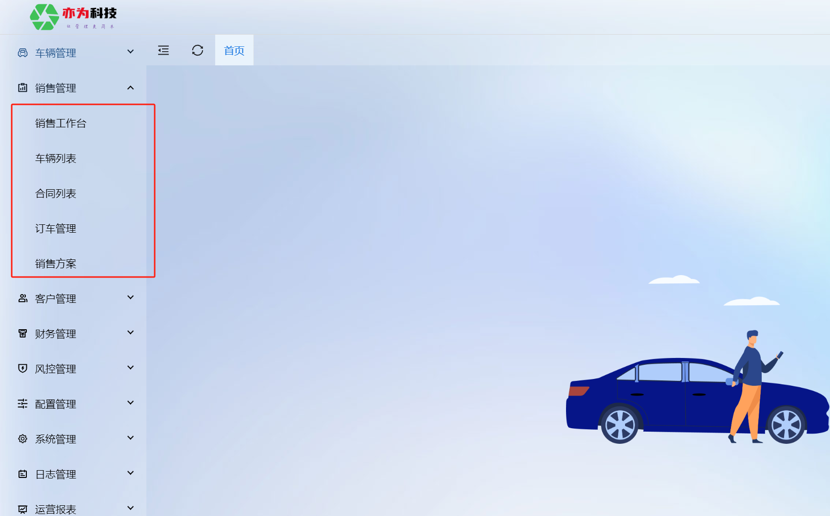 销售管理主要有:销售工作台/车辆列表/合同列表/订车管理/销售方案
